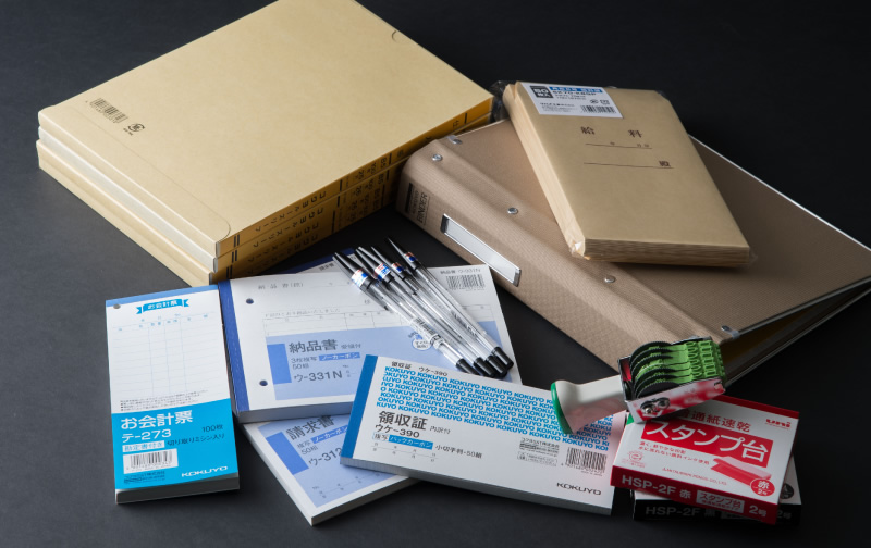 領収証や見積書、各種帳簿など、会社で使う事務用品から、ペンやマジック、クレヨン、画用紙など、ご家庭でも使う豊富な日用文具まで、欲しいアイテムがきっと見つかります。